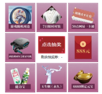 此外,每日通过大神将军令扫码登录游戏可得抽奖券,有机会获得蓝牙耳机、健力宝饮料、绑定元宝、现金红包、点卡等好礼!