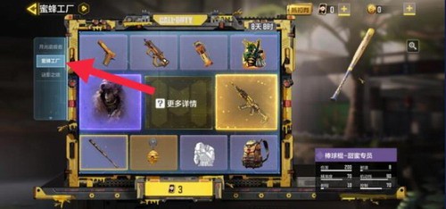 3. 点击活动板块进入抽奖,第二个“蜜蜂工厂”里有“甜蜜专员-棒球棍”