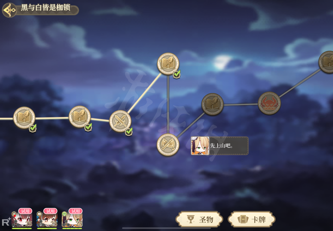 进程单向性,这一点在游戏中表现得较为暧昧,在单次副本当中,我确实不能在闯到2-2-2关卡时再回头游玩2-2-1,但因为游戏完全不符合“生成随机性”的原则,实际我可以无限次在2-2的大关卡中利用更强的阵容来刷星,因为生成固定性的存在,导致了进程单向性的无意义。