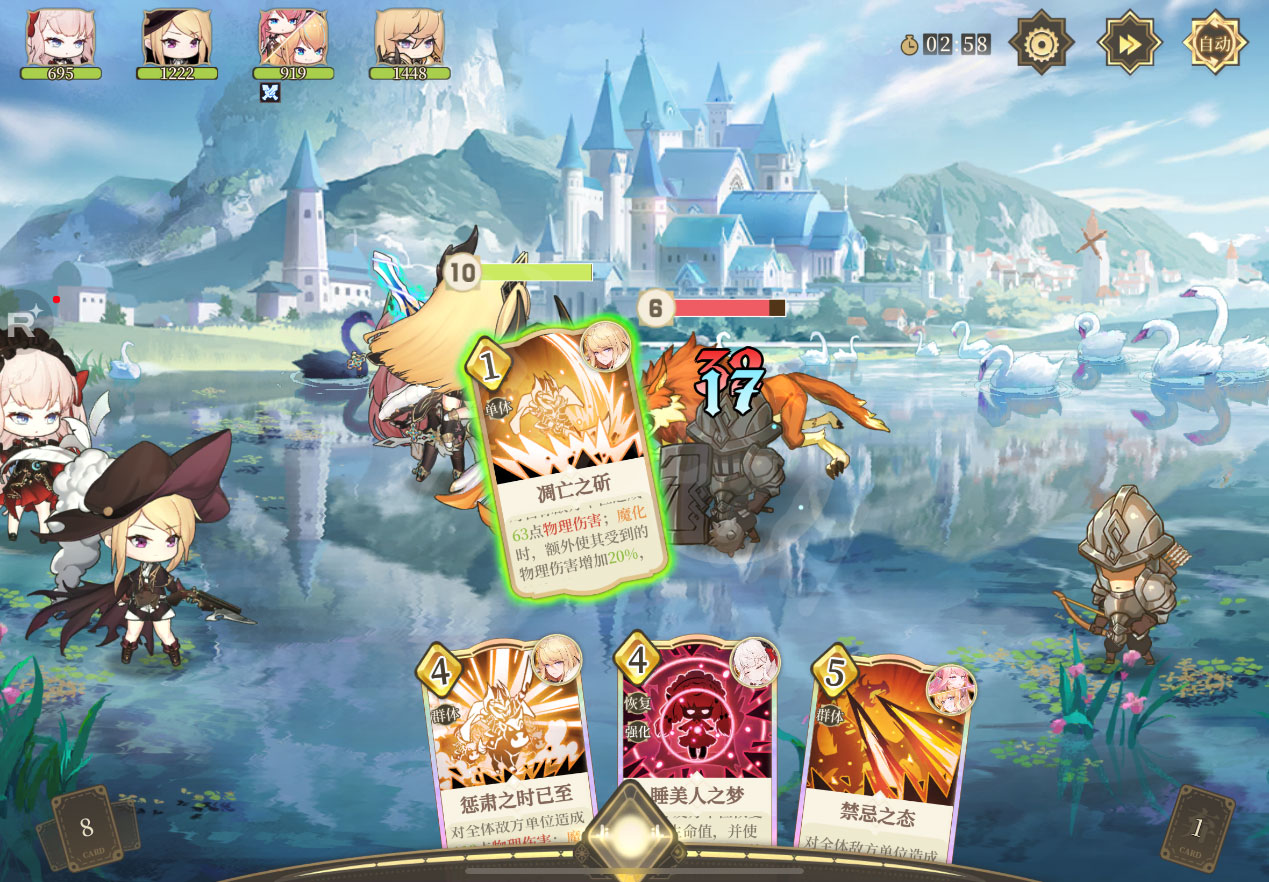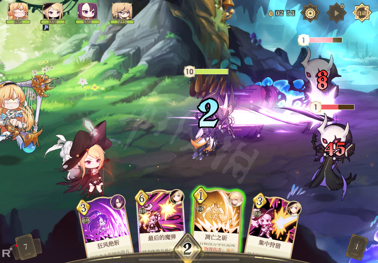 系统复杂性,虽然以上五点《纯白和弦》都没有做到,但这点才是压垮骆驼的最后一根稻草,游戏的战斗系统可以说简单到可怕,虽说游戏把角色们的技能做成了更有肉鸽味的卡牌,但战斗都不是回合制卡牌到底有什么意义啊!难道我打斗地主可以不管别人的回合等出牌cd出牌吗?玩家能上手的卡片也不过是角色的三个技能,出牌(放技能)节奏也是亮了就打,更何况游戏还自带一个自动战斗功能,反正所有战斗我都是挂机过,ssr数值碾压r卡,使劲儿氪你就是旋律世界的爷。