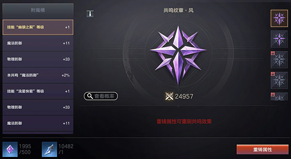 开放技能共鸣系统,通过对共鸣纹章的升级,可激活纹章附魔效果,提升属性的同时,甚至可以提供额外的技能强化效果,从而实现更多的技能策略搭配;