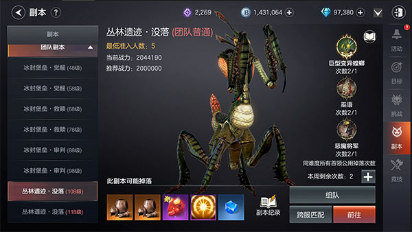 【108级团队副本“丛林遗迹”开放】