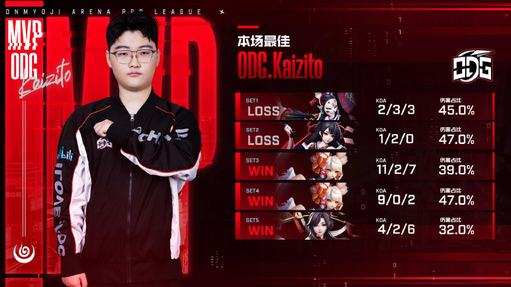 《决战!平安京》OPL职业联赛春季赛常规赛第一阶段已全部结束。第五周ODG接连赢下了ZGDX、ACT、ASTER三支队伍,斩获三连胜!特别是在与ASTER的比赛中,ODG战队凭借不气不馁的精神,积极调整心态,让二追三,给自己的常规赛第一阶段画下了句号。接下来让我们一起回顾第五周的三场比赛。