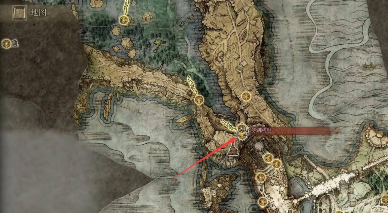 1、打开手游地图,选择传送到达傍湖断崖的地点。