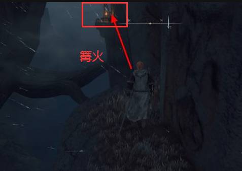 4.拿到了石剑钥匙后我们继续向左前进,通过篝火旁的梯子爬到上面的平台上。到了上面之后我们向左走,走那个突出来的,看着是三角形的那个地方,然后走过去。之后我们在消灭一个小兵,然后再继续向左走,又通过篝火旁边梯子往上爬