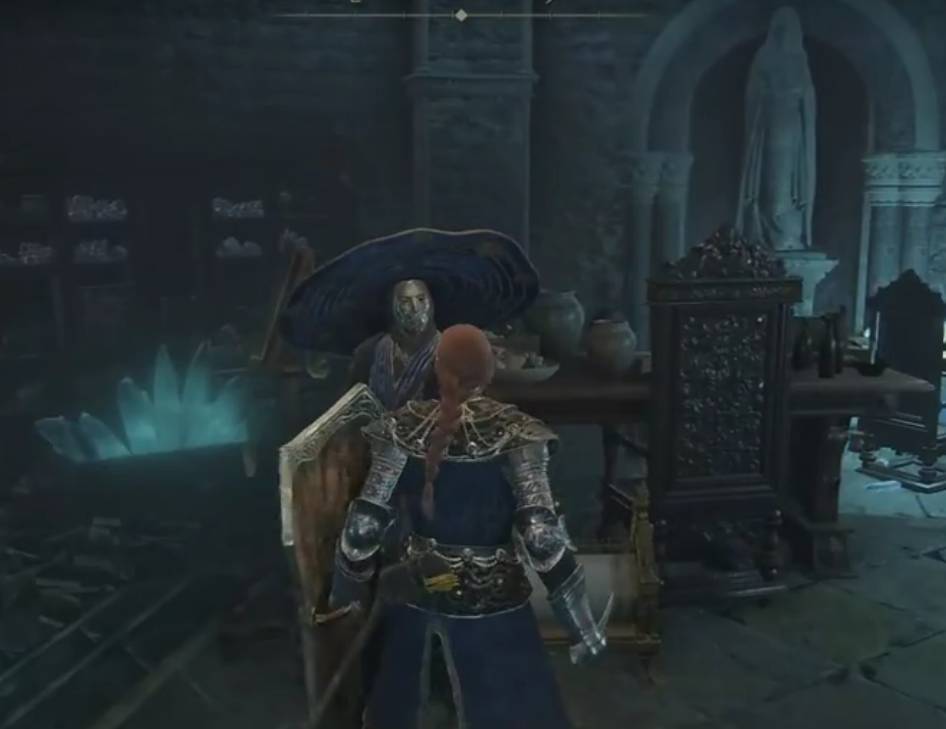 先跟菈妮魔法师塔里的NPC对话,对话完他会让你走,这时候回到大赐福和下图中的男的对话。