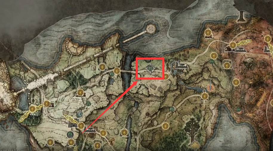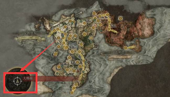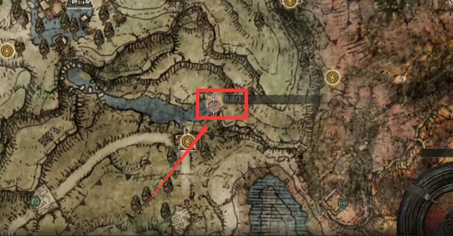 1、首先我们打开艾尔登法环手游地图,然后来到水唤村左边的地点找到一个叫D的NPC进行对话,地点如下图所示