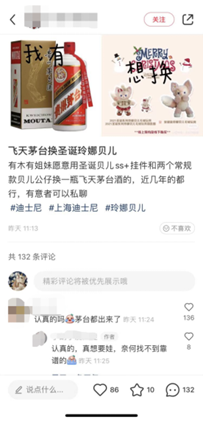 随后,达菲熊家族又加入新成员玲娜贝儿,迅速将曾经的“女明星”星黛露挤下巅峰,成为迪士尼新的摇钱树。2021年12月迪士尼推出了圣诞系列玲娜贝儿,其溢价之高令人震惊。在官方平台上,原本的常规款玲娜贝儿、圣诞系列玲娜贝儿价格均为219元,圣诞玲娜贝儿钥匙圈139元,三件合计577元。而在二手平台上,想要收齐三款均价已经在3000元以上,最高甚至超过6000元,网上还有网友发帖表示愿意用飞天茅台换圣诞玲娜贝儿。