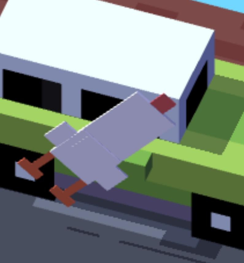 玩家操纵小鸡,往前跳或者往左右跳,穿过来往的车辆,避开障碍物: