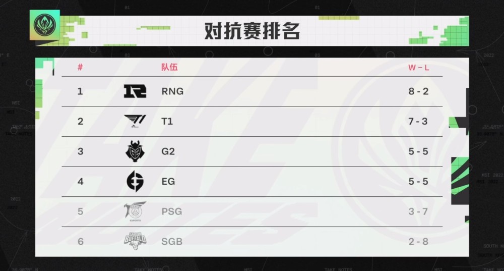 MSI季中冠军赛对抗赛的比赛结束之后,将会有两天的时间可以休息,RNG战队将会在周五率先出战对阵EG,然后就是T1与G2的对决,三天三个BO5,直接结束MSI的所有征程,而在四强阶段比赛开始之前,MSI对抗赛的数据也新鲜出炉了,得到了很多人的关注。