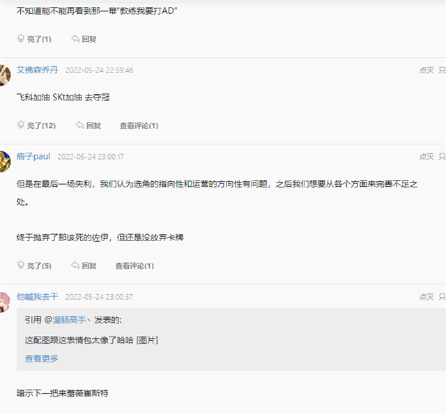 T1明明是第二名晋级,论嘴硬却堪称首名。faker也被问到了第一轮落败的事,他表示:非常想战胜RNG,获胜之后心情很好。当时输给RNG真的被气到了,这次一雪前耻、得偿所愿,心里很高兴。