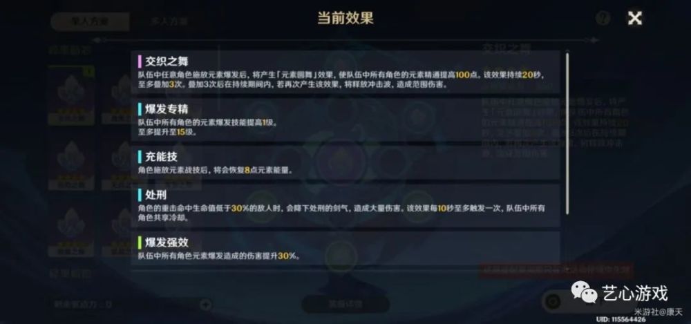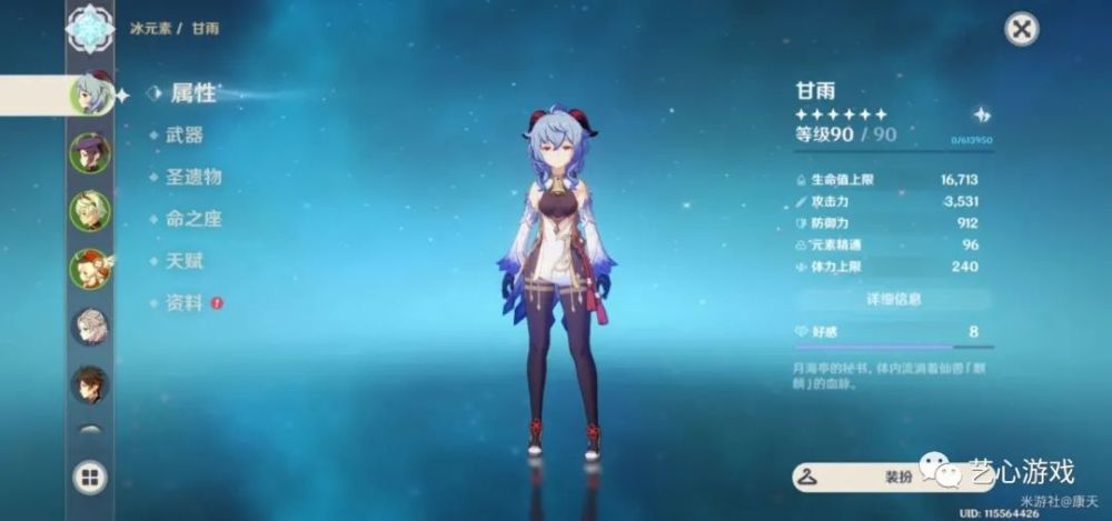 以暴制暴就是追求全输出,另外两个队员之一肯定也是莫娜,大招的核爆增伤效果。莫娜班尼特,最强输出追求肯定有这两。最后一人我选了甘雨,全程挂冰,让可丽能够打出双倍融合伤害,而且伤害也不错,特意把阿莫斯换成了天空弓。