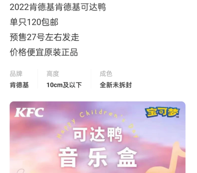 门店这种的更是不用多说,属于肯德基的可达鸭音乐盒直接在三天之内在多数门店里脱硝。