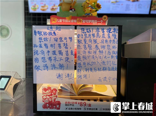 临近中午,记者来到肯德基云投中心店,该店点餐台明显位置张贴出相关告示:目前本店宝可梦套餐数量有限,已全部售罄。记者观察到,短短不到十分钟时间,就有不下三位顾客前来询问。“后续到货时间预计在28号左右,我们门店推出了微信社群,到货后会第一时间通知顾客。”肯德基云投中心店员说道。
