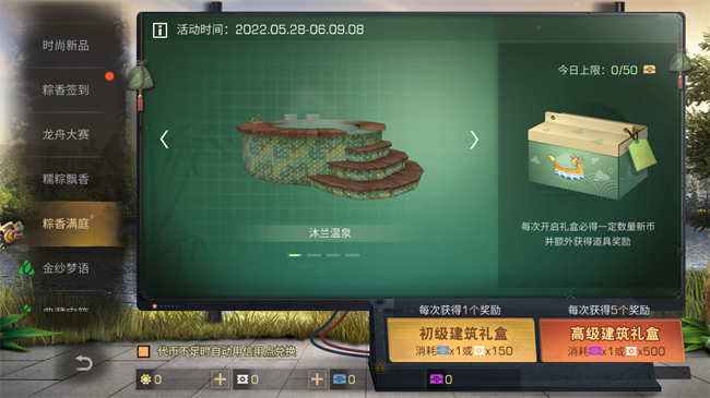 春水煎茶,夏雨裹粽。5月26日-6月8日,联盟还为大家准备了一份丰盛的“粽香盛宴”。古风家具充满诗情画意,粽子节风格的沐兰温泉、群青尽染装饰,更为废土生活增添几分惬意与希望。