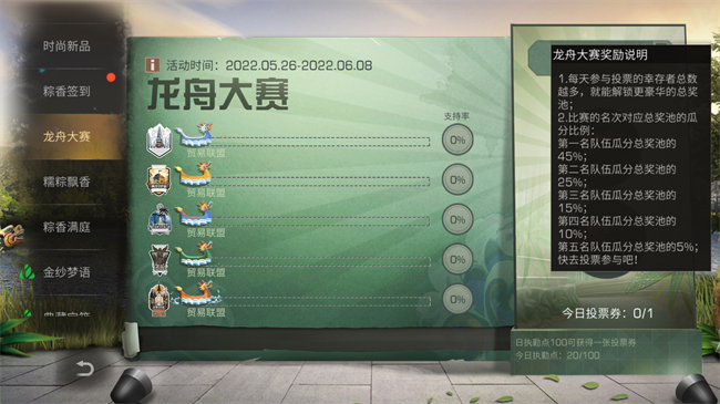 5月26日-6月8日期间,幸存者参与龙舟大赛,完成日程任务,可获得双倍执勤点,同时获取双倍执勤点宝箱内熟练度。