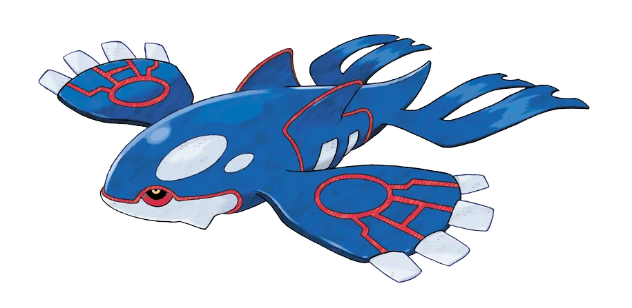 鲸鱼的原型,两片超大的鳍,对称的鱼尾,它不像同为超古代宝可梦的固拉多那样棱角分明,也不像裂空座那样夸张,盖欧卡是一种顺应自然、圆润的美,红、蓝、白三种配色分部得恰到好处,不刺眼、不俗套。
