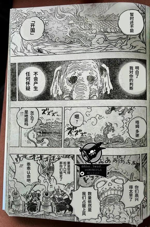 猫蝮蛇这边,也终于鬼岛剩下的人说明,路飞终于击败了四皇凯多。