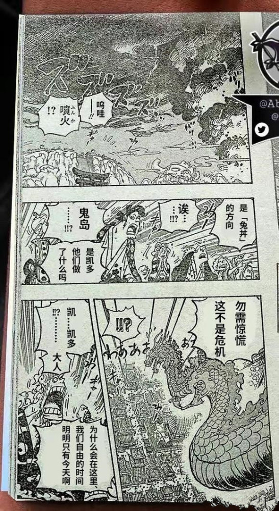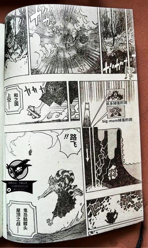 本话开始,四皇凯多被路飞击败,昏迷地掉入了和之国地底的深渊,而大和则冲向了昏迷的路飞。