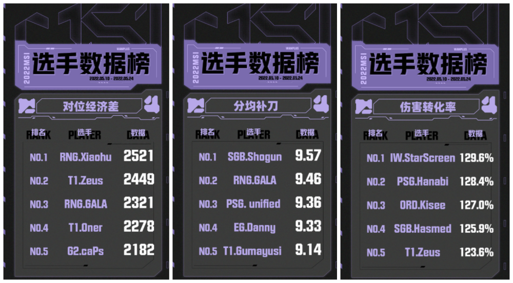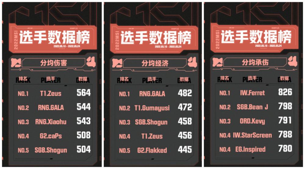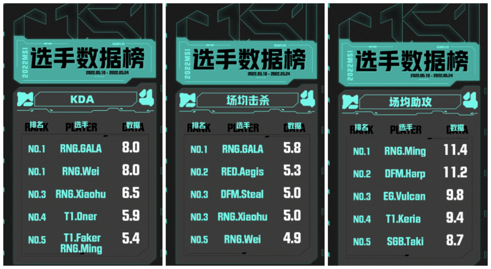 MSI季中赛选手数据榜公布