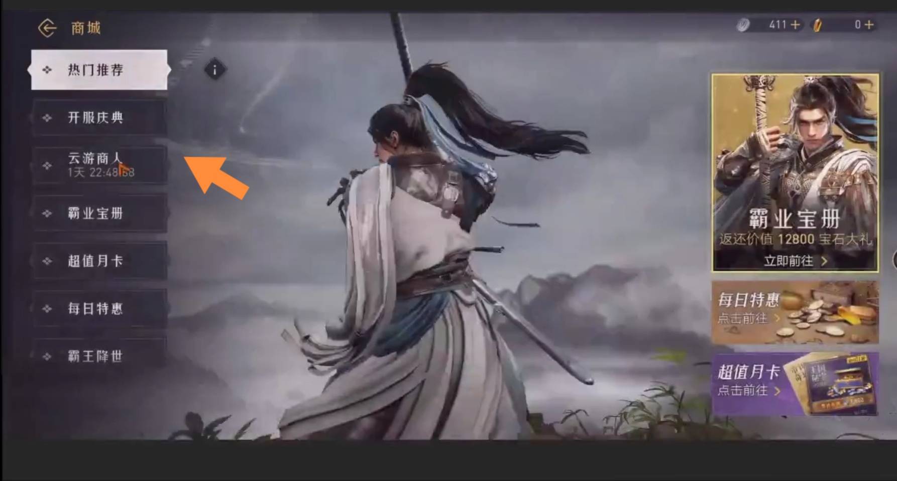 2、在商城中选择有倒计时的“云游商人”。