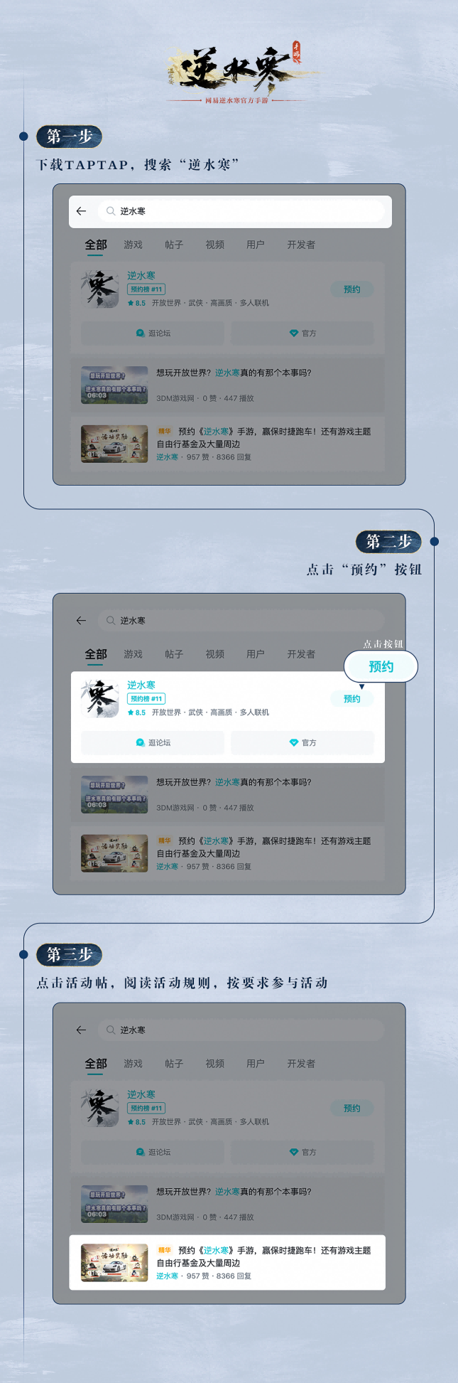 或登陆www.taptap.com,搜索“逆水寒”。