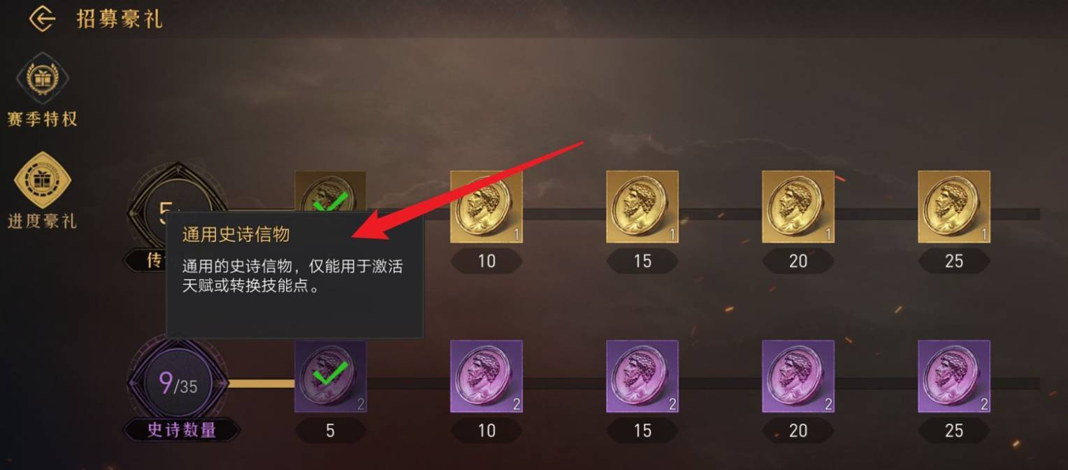 3、最后在招募豪礼页面,点击信物,即可获取。