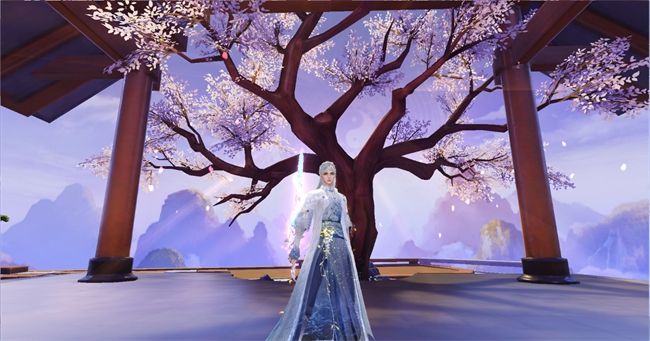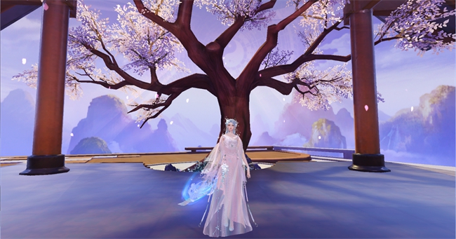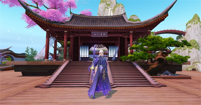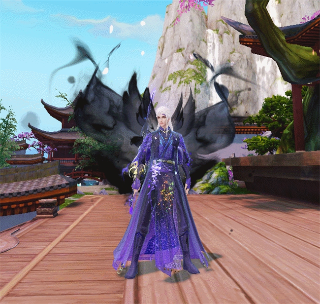 落星楼上吹残角,偃月营中挂夕晖。男版【落星偃月】以紫色为主调,洁白银丝轻轻后挽,乌黑色衣袖衬以魅紫色的襟饰与肩饰,下身长袍幻彩,宛如星落夜空,给人深不可测之感。女版【落星偃月】同样以紫色为调,银发饰以紫花神秘而妖艳。衣袖采取了披肩设计,裙摆薄纱轻扬,少女走动时纤手轻摇,玉腿若隐若现,一颦一笑似有勾魂之感。