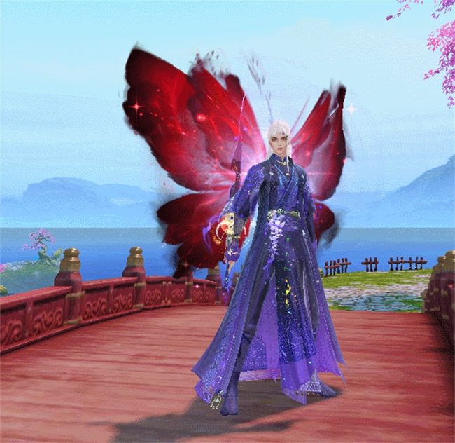 醉看墨花月白,恍疑雪满前村。翅膀【墨花月白】如同水墨画一般通透秀丽。如水般柔和的墨色铺展于身后,光影交错间将翼翅衬托得栩栩如生,仿佛拥有了生命,空灵而缥缈,令人神往遐思。