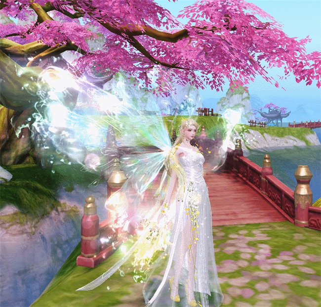 翅膀【玲珑水晶】清澈的泉水自肩胛处奔涌而出,水珠沿着翅脉花纹流转,犹如水晶闪耀出点点流光。在曦光之下扑簌扇动时,又会折射出炫目色彩,让人眼前一亮。少侠穿戴上翅膀【玲珑水晶】便犹如飞燕游龙,悠然自在。