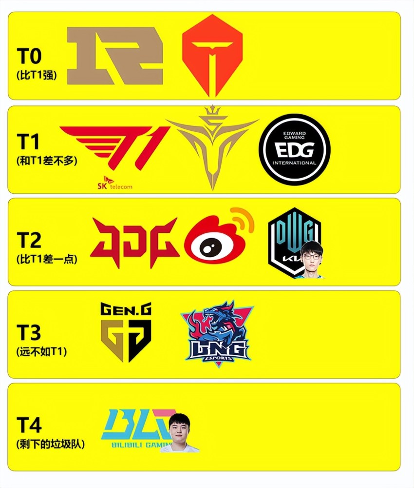 而在这个战队评级图上,RNG和TES放到了T0级别,个人认为比较客观,因为TES上限很高,放到LPL排第2个人认为没有问题,RNG在第一也难以质疑,毕竟拿了MSI冠军,并且成功击败T1。当然TES和T1没有交手过,很难说两个队谁更强,不过从和RNG的交手战绩来看,TES给RNG造成的威胁更大,而且没有被RNG打出过人机局,这或许也是作者把TES排到T1前面的原因。