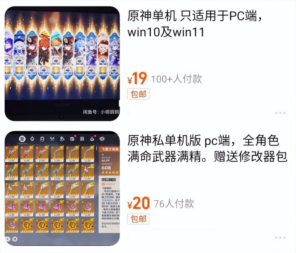 我们都知道,有需求就有市场,大量玩家对于《原神》私服的热情也就导致了一批人铤而走险架设私服,然后再对玩家按时间收费,或者以极低的价格出售原石,从而实现敛财的目的。直到现在我们仍然可以在某些电商平台、视频网站和论坛等轻易搜索到《原神》私服的相关消息。