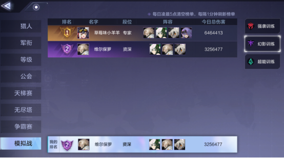 除了推图养成肝装备外,《时空猎人3》还很注重社交体验,玩家在游戏中可以找到很多志同道合的小伙伴,一起挑战BOSS、一起多人竞技。游戏贴心的新增了多种排行榜,特别是模拟战伤害排行榜的出现,为追求极限输出的玩家提供大展身手的地方,谁又能拒绝这个登上打桩排行榜,接受无数玩家膜拜的好机会呢?