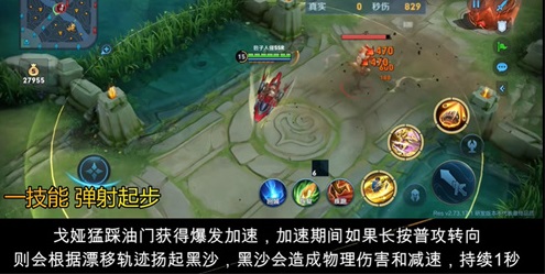 1、可以先使用一技能弹射加速追击敌人,接着长按普攻。