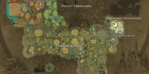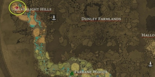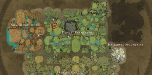 如果你只能选择一个地方建造城堡的话,邓利农场的下图地点就非常适合你,西北边有个传送门,而且是死角。空间是非常的大可以直接建造在平地上,附近的资源点应有尽有,宝石、石英、玻璃、哀悼百合、马和各类血液等,所有战斗风格的小伙伴都适合在这里建造城堡。