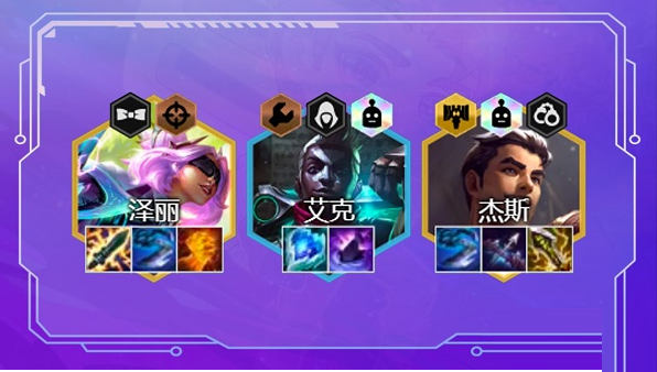 阵容组成伊泽瑞尔、辛吉德、基兰、艾克、烬、萨勒芬妮、泽丽、杰斯