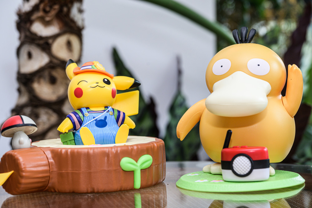 皮卡丘的八音盒与水壶更偏向实用功能(储水和放音乐),水壶上的皮卡丘无法摆动,而音乐盒上的皮卡丘虽然能轻微摆动,但二创难度比较大,也没有可达鸭身上呆萌的反差感和饱满的情绪感。