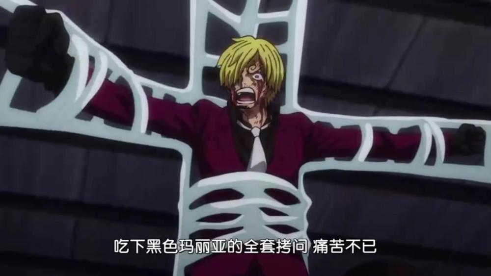 黑玛利亚只能采取殴打的办法,对山治严刑拷打,仿佛就像审问犯人一样。黑玛利亚是狠角色,手上戴上铁防具,直接暴打山治。山治的身体也无法承受黑玛利亚这般殴打,他被打得嗷嗷大叫,经过一轮殴打,山治再也受不了。黑玛利亚让他喊罗宾过来,只有罗宾才能救你,山治也不是傻子,果然向罗宾求救了。