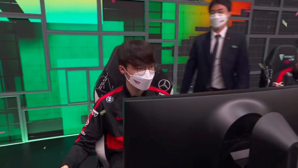 而最新公布的画面是Faker比赛刚结束后戴口罩的一个镜头,结果这个镜头再次引起了观众们的热议。