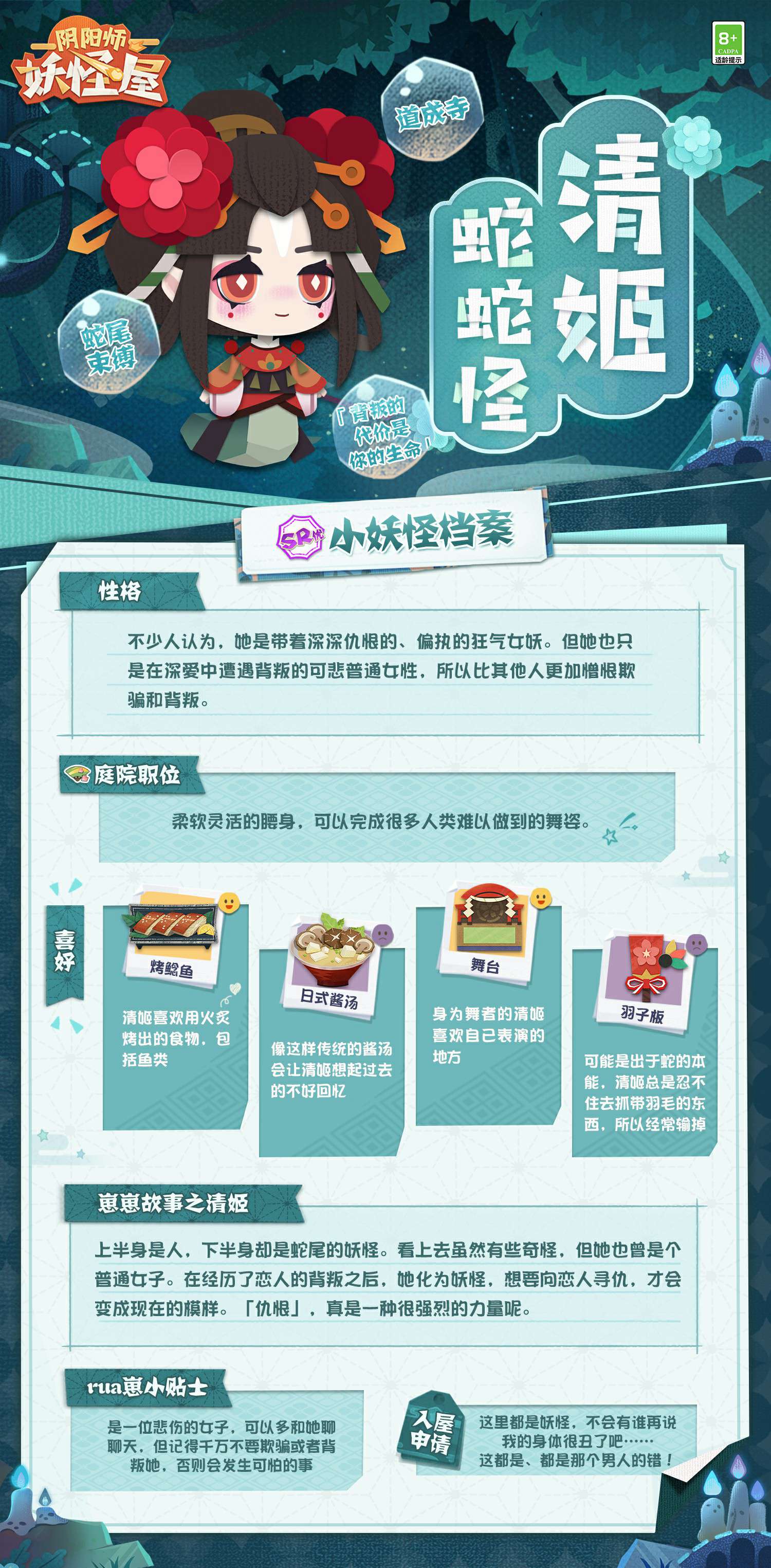 快收下这份档案卡,为清姬提供容身之所吧!