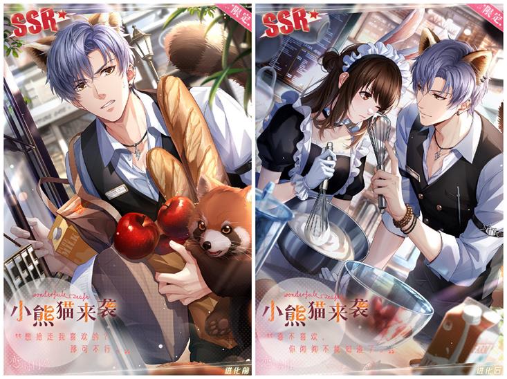 5月31日更新后~6月9日,参与「奇妙咖啡厅」主题活动,即有机会获得五张萌趣主题SSR【周棋洛·小心熊出没】、【白起·萌狼出动中】、【许墨·转角遇到狐】、【李泽言·小猫乱撞时】、【凌肖·小熊猫来袭】以及配套萌趣服装与专属耳朵&尾巴配饰。