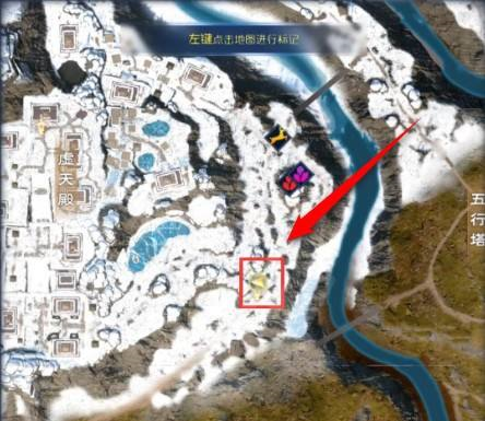 2、打开地图后,来到昆仑虚天殿右下方的地点。