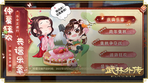 不仅有美味的周年蛋糕供各位少侠们食用,还有蛋糕争夺战玩法、巡游狂欢、盛装回馈等多种玩法和福利等待少侠去探索!