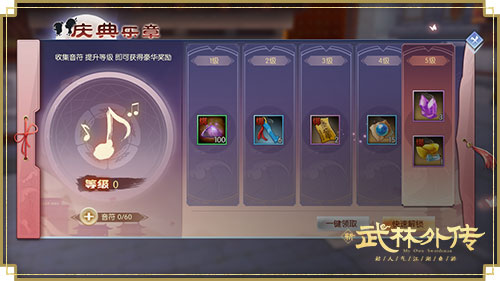 庆典活动时间内,参与专属活动【庆典乐章】,少侠们可以消耗活动代币【音符】提升【庆典乐章】等级,以解锁丰富道具奖励。