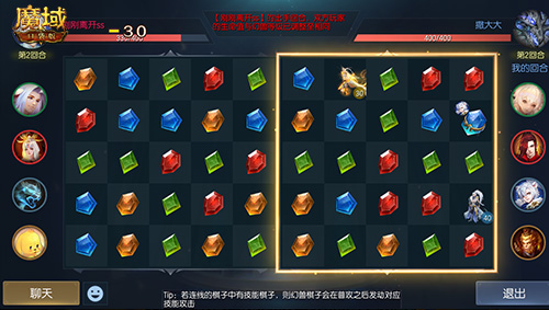 “连线大作战”脱胎于经典消消乐玩法:红黄蓝绿四色宝石至少两颗同色连接即可消除得分,并对与你同场比拼的玩家造成血量伤害,让对手血量归0便可获得胜利。而在简单的基础规则上,独特的幻兽棋子加入则让战斗衍生出诸多策略:玩家每场比赛最多可选择四枚幻兽棋子出战,幻兽棋子同样分为四色,可与同色宝石组合消除,每当消除幻兽棋子即可触发相应幻兽技能——攻击、恢复、防御、增益、召唤……数十种强力技能帮你不断扩大场面,享受独一无二的对战乐趣!