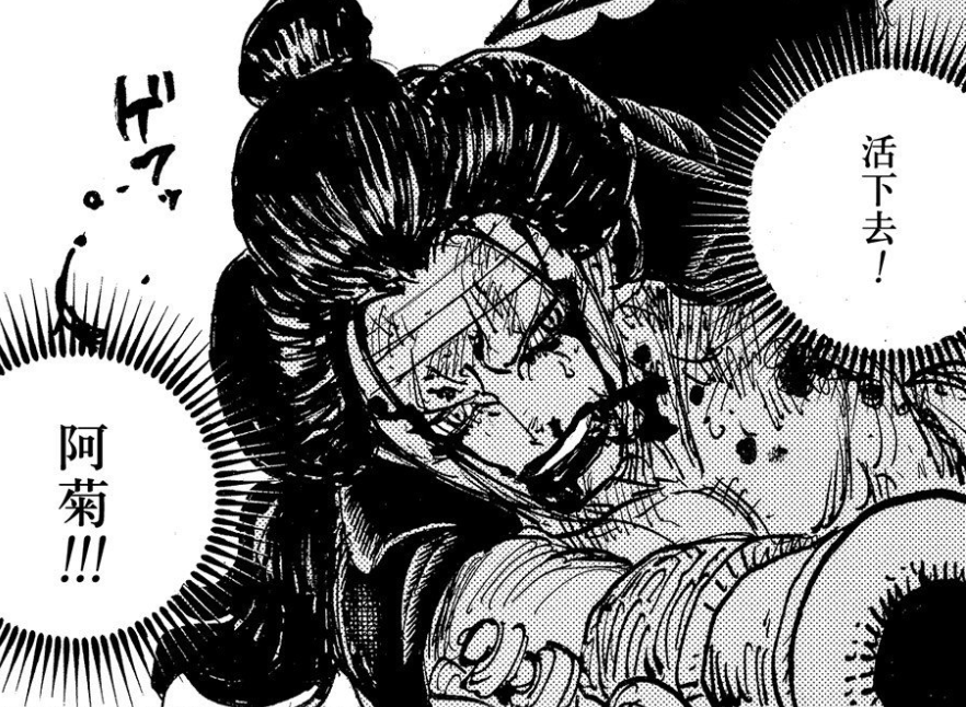 按照1050话给出的细节,锦卫门和阿菊依旧被乌索普扛着,跑去寻找乔巴医治,两人还是处于昏迷状态,十分凄惨,但不会领盒饭。