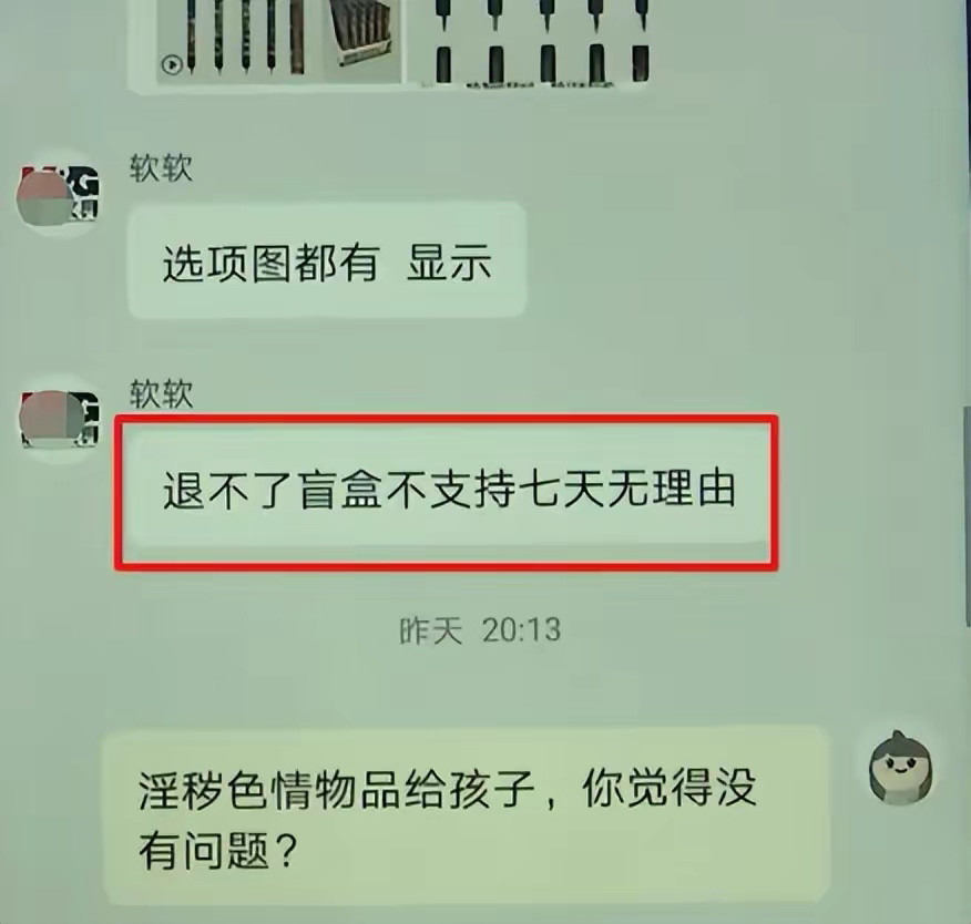 无奈之下,朱女士想退货,但商家仍直截了当地说:“退不了,盲盒产品不支持七天无理由退货。”