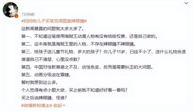 6月1日,热搜榜上的一条话题触动了无数漫迷们的神经---妈妈给儿子买笔觉得图案辣眼睛。
