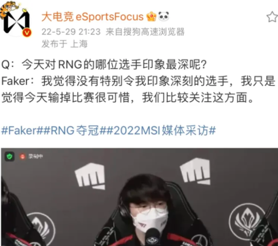 Faker自己没有变,只是以前叫电竞精神,现在叫还在嘴硬。