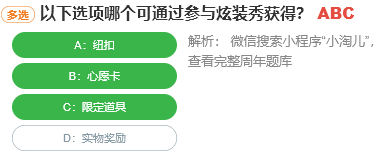 “以下选项哪个可通过参与炫装秀获得?”是淘宝人生3周年桃仁300中问答题目之一,只要答对了就可以兑换券,大家知道这个题目的答案是什么吗?下面就和小编一起来看看这个活动的题目答案吧。